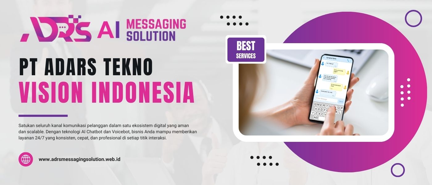 Melalui integrasi AI Chatbot, AI Voicebot, Omni Channel, WhatsApp Official API, dan SMS dalam satu platform terpadu, Adars Telesuara memungkinkan bisnis menjangkau pelanggan di seluruh Indonesia bahkan global secara cepat, konsisten, dan real-time. Dengan kemampuan menangani ribuan interaksi sekaligus di berbagai kanal komunikasi populer, solusi Adars Telesuara memastikan setiap pesan tersampaikan, setiap panggilan terjawab, dan setiap peluang bisnis tidak terlewat.